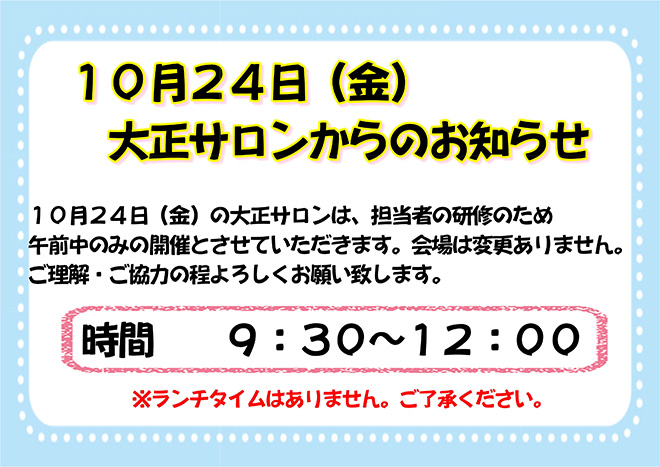 10月24日(金) 大正サロンからのお知らせ
